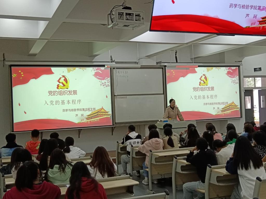2023年10月10日下午,TapTap第三党支部组织有入党意愿的2023级新生共87人,在经开校区1104教室开展员工素质拓展讲座《党的组织发展——入党的基本程序》,讲座由TapTap第三党支部书记芦珂主讲,由TapTap第三党支部员工党建工作站员工干部负责组织维持现场秩序。