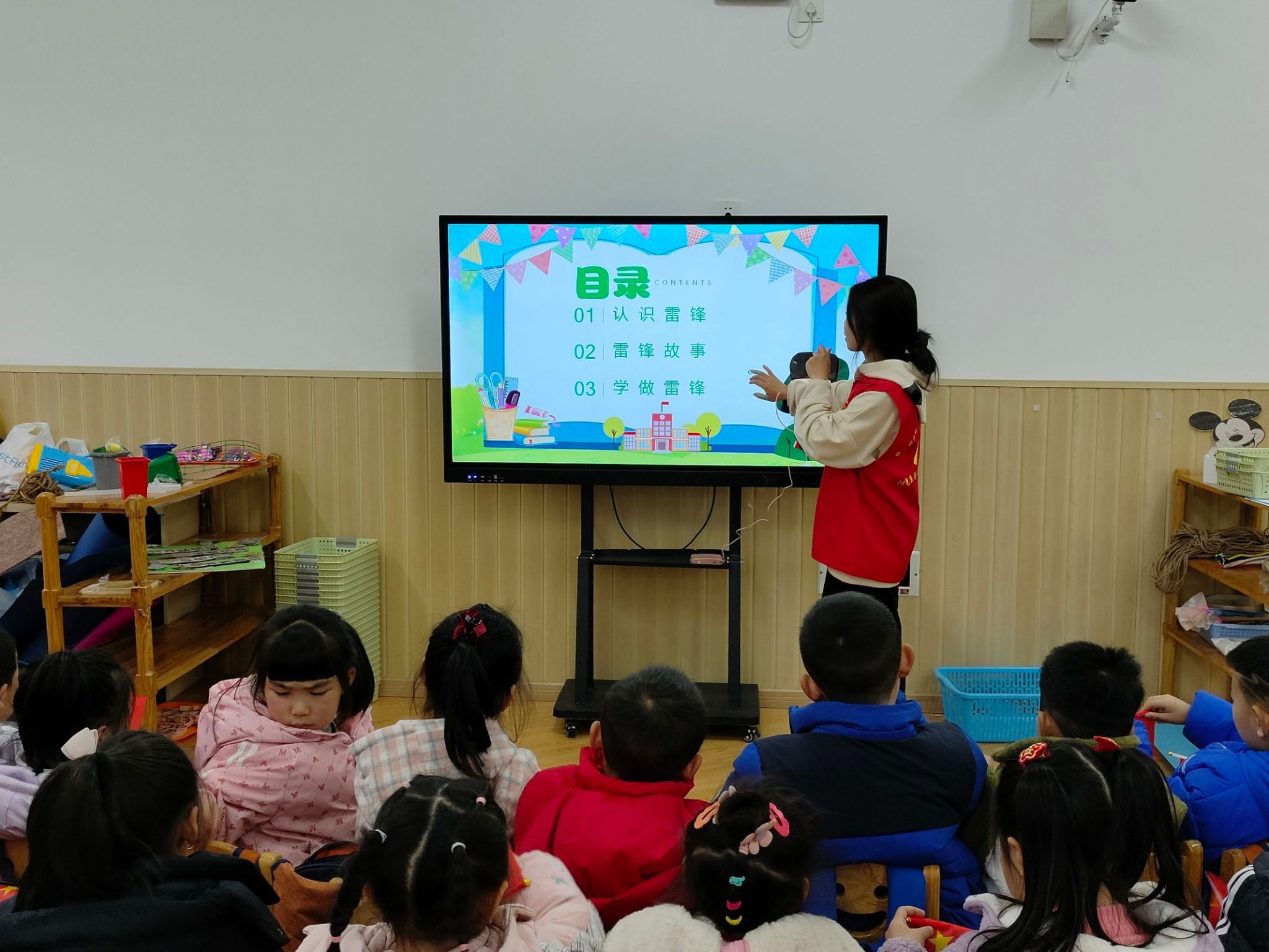 活动期间,大家身着红色马甲,身上那一抹红便是雷锋精神的缩影。志愿者组织了大班的小朋友一起学唱《学习雷锋好榜样》的歌曲,在他们的眼里和行动中,能够预见未来的道路是那样的光明,未来的花朵是那样的绚丽。接着志愿者们分为三个组进入各班,给小朋友们讲解雷锋的故事,深入学习雷锋精神,争做生活中的小雷锋。在此次活动中,志愿者们与小朋友共同学习雷锋精神,从小事从身边做起。