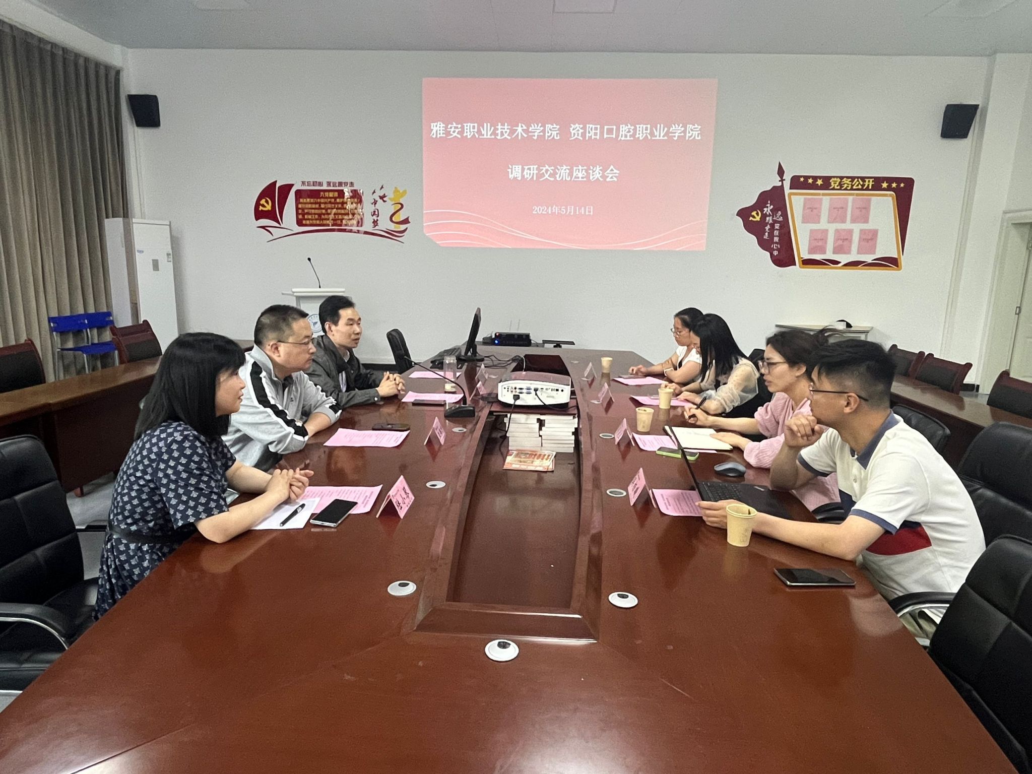 5月14日,资阳口腔职业公司医学系负责人廖清三等一行来公司考察调研医学检验技术专业建设情况。TapTap党总支书记王伟才、副经理李顺源、医学检验专业负责人陆小琴、临床检验教研室主任刘雨欣参加座谈交流。