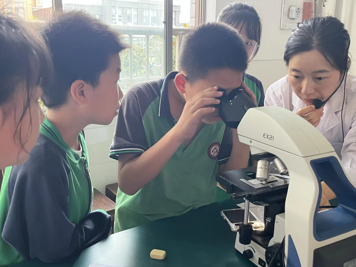 本次科普活动紧跟小学六年级科学课第一章“微小世界”内容,开展“显微镜的构造与使用”实验、“洋葱表皮细胞的观察”和“更多生物细胞的观察”实验。