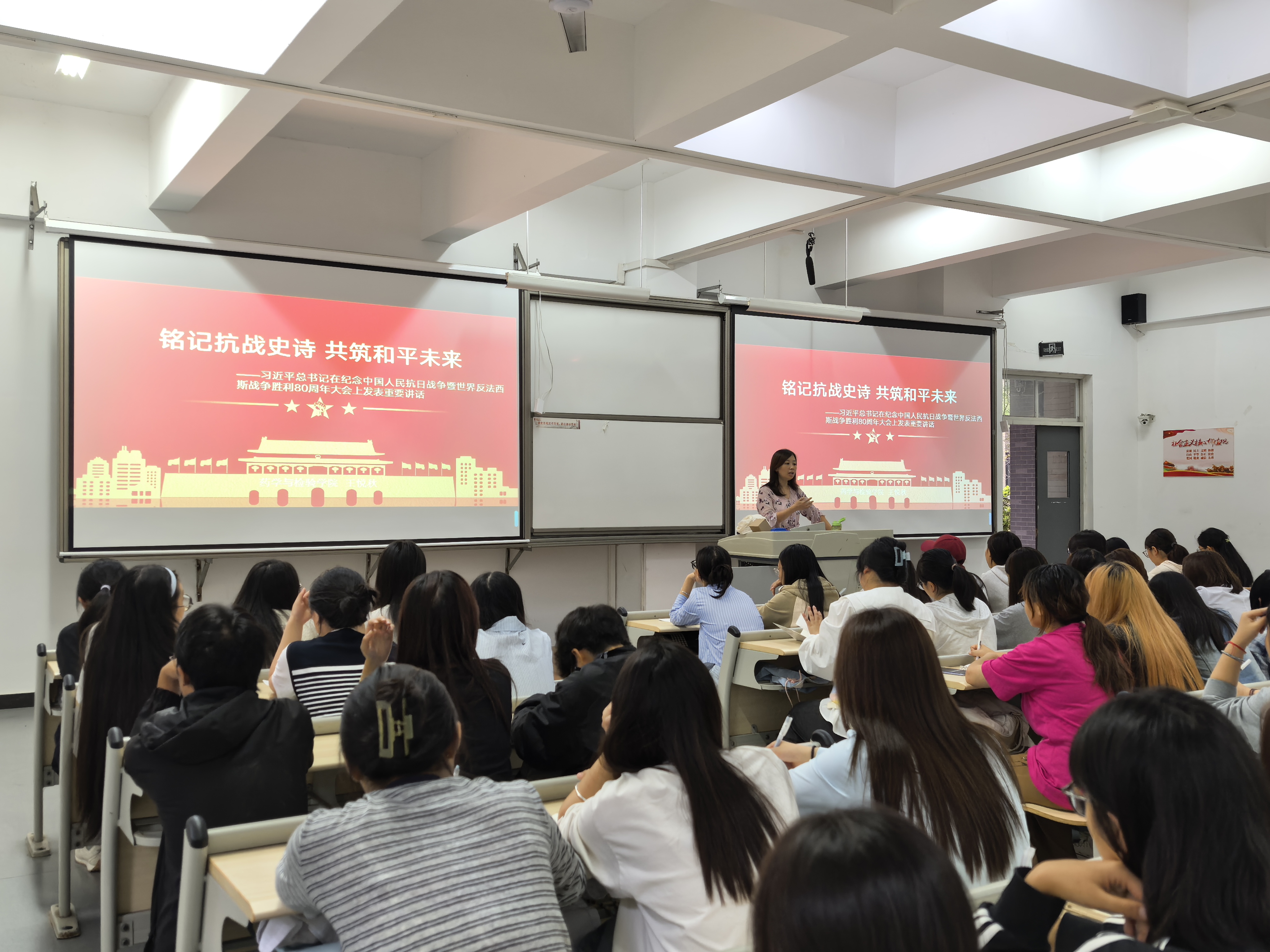 10月11日,公司党总支书记王悦秋老师以“铭记抗战史诗,共筑和平未来”为主题,结合历史影像与习近平总书记重要讲话精神,引导员工深刻认识抗日战争与世界反法西斯战争的伟大意义,增强历史责任感与爱国情怀。