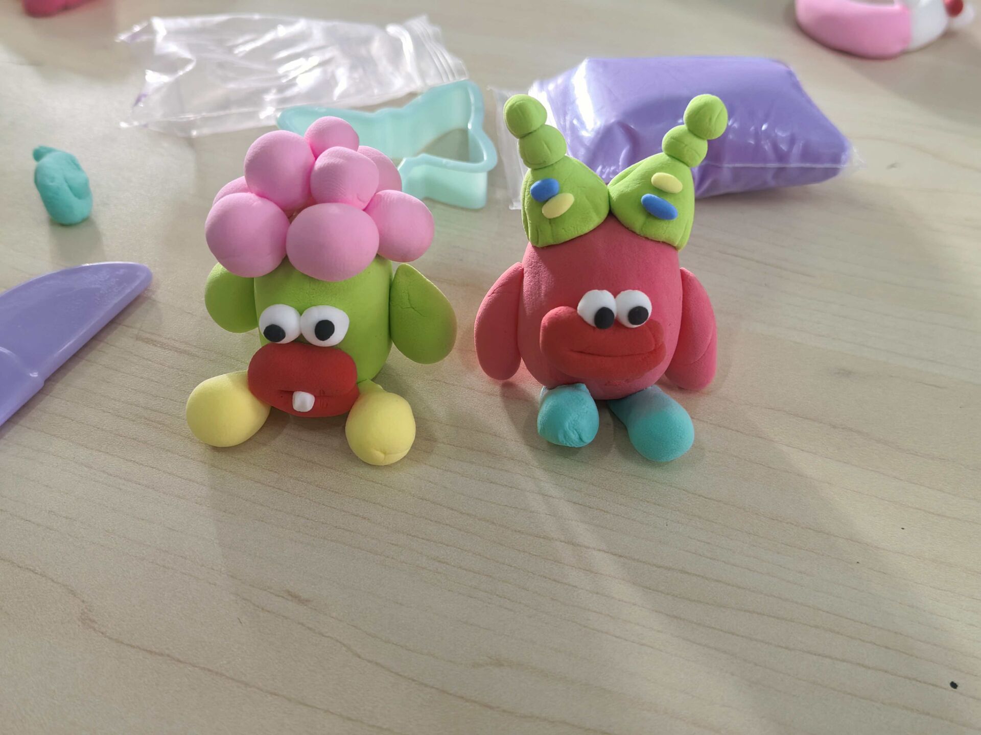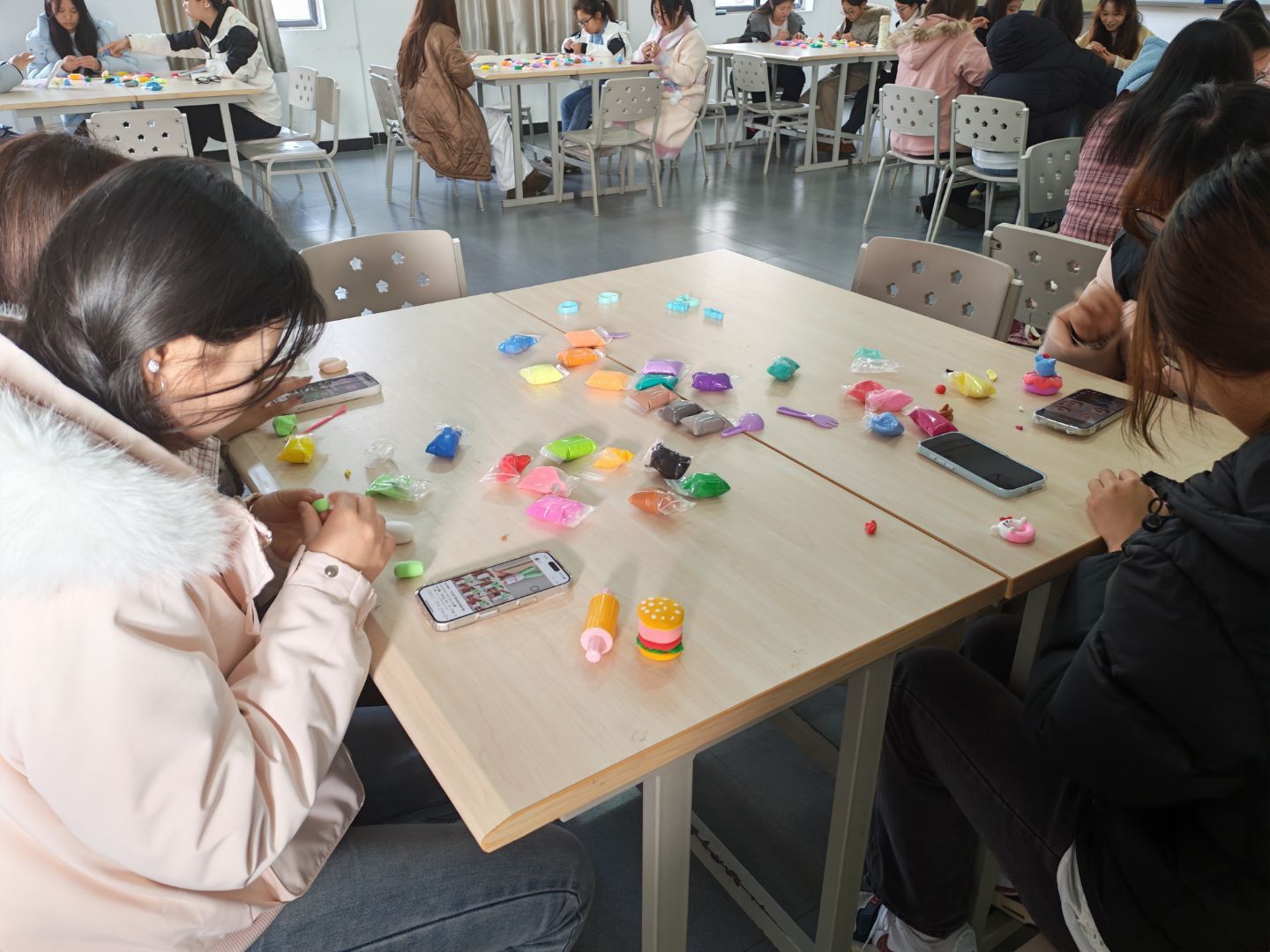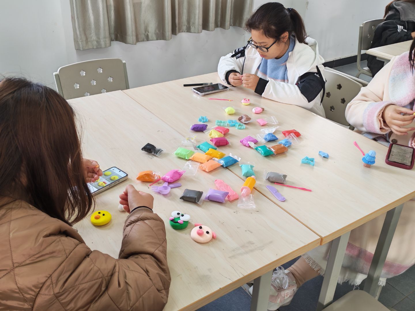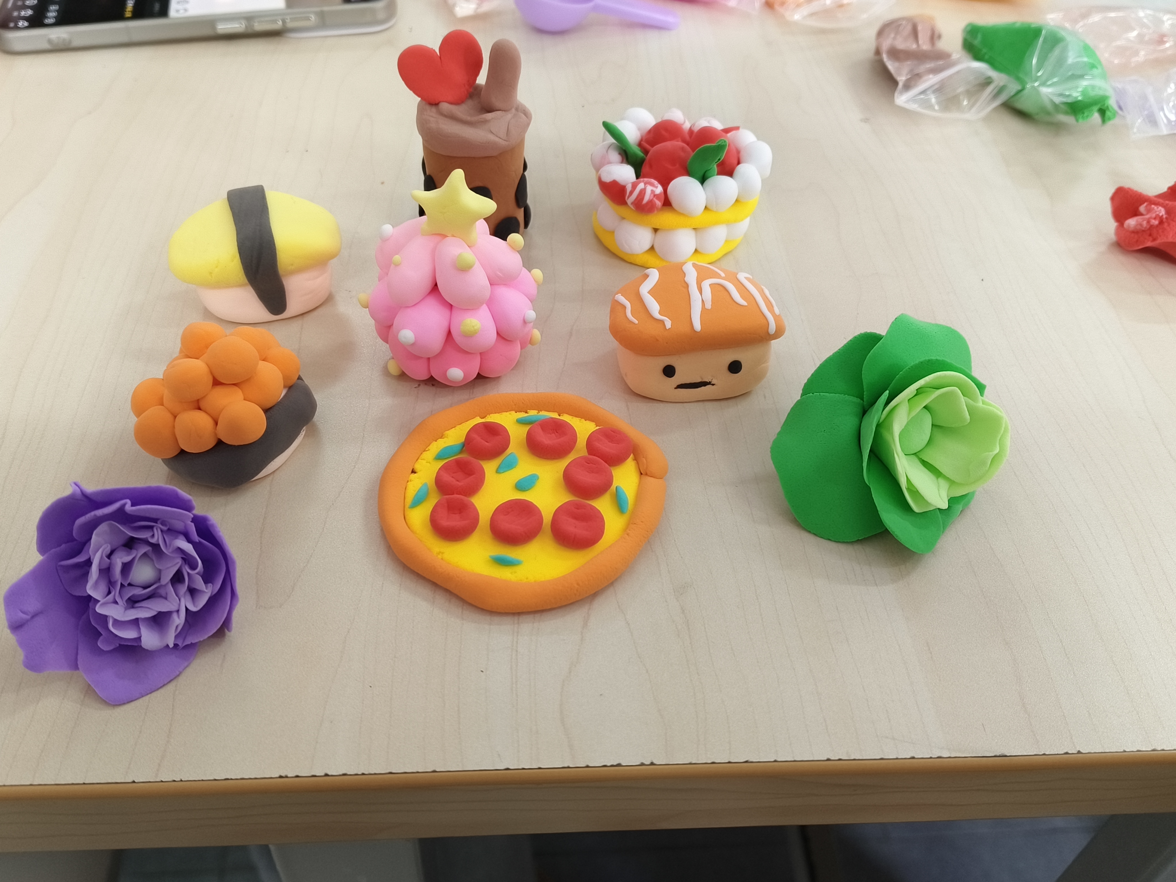 紧接着就是最热闹的动手环节。大家一边找灵感,一边笑嘻嘻地创作起来。有的捏出了软萌小动物,有的做出了花花与卡通小人,教室里到处都是专注的眼神和开心的笑声,还不时传来“你看我做的!”“哇你这个好可爱!”的互动。