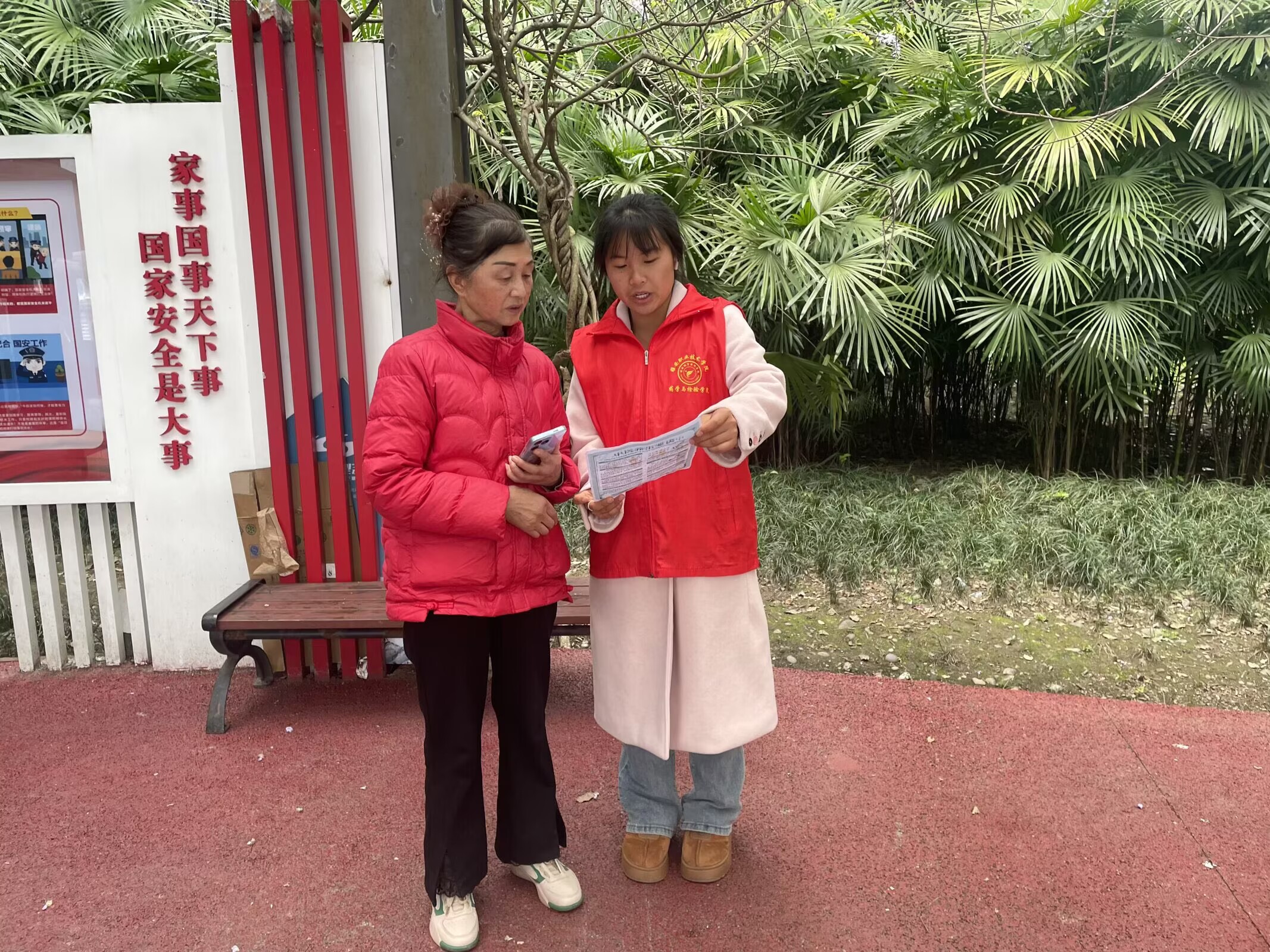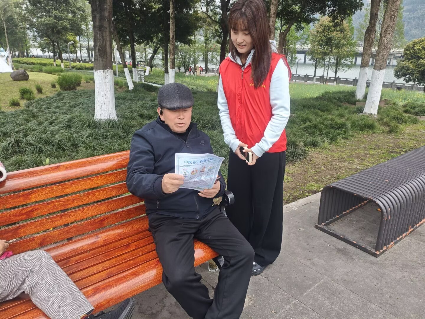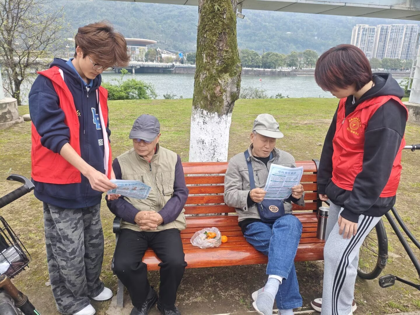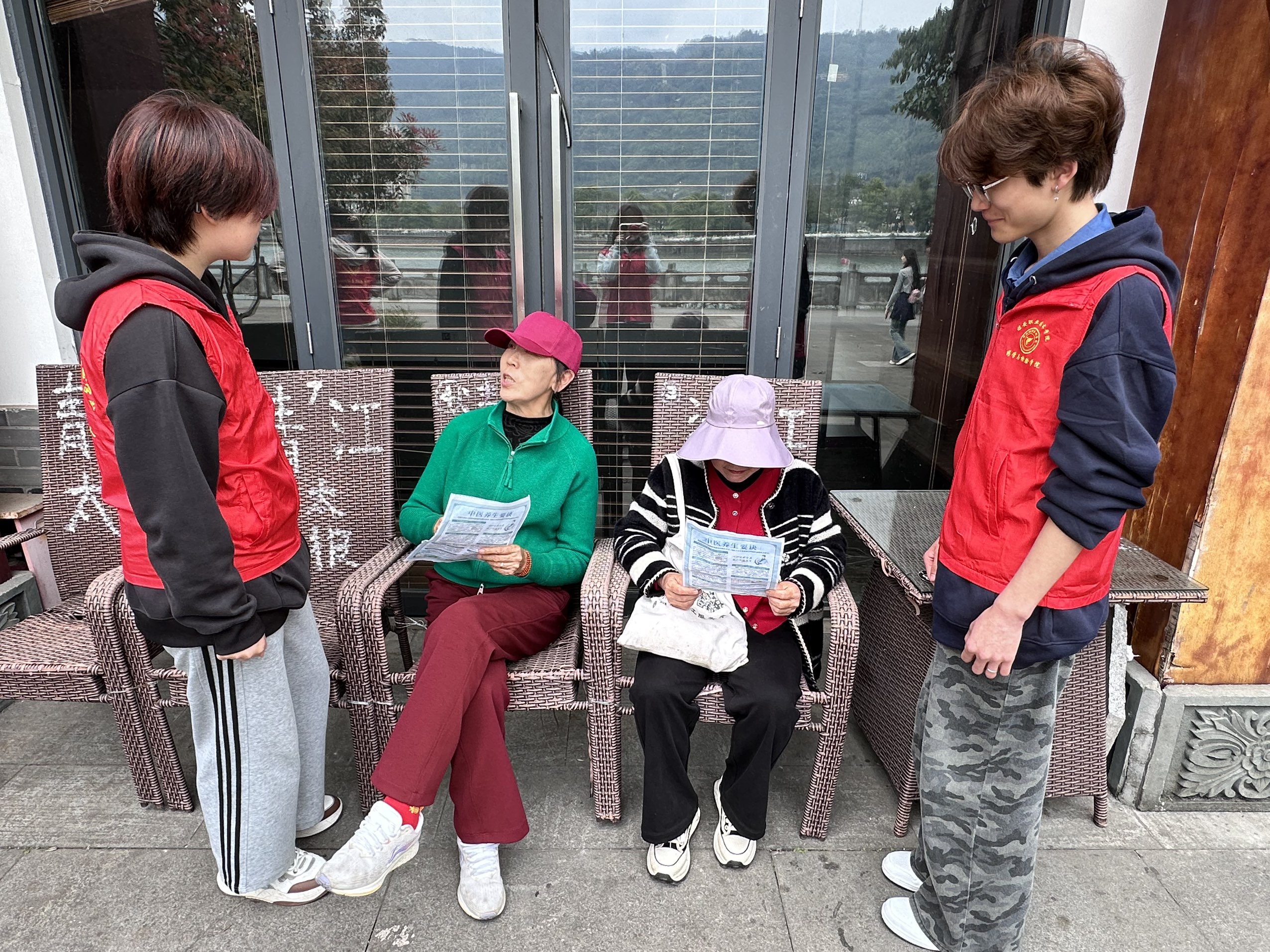活动当日,志愿者团队分为四个小组,明确分工,各司其职,分别负责讲解宣传、拍照记录及机动协调。志愿者深入公园步道、休闲广场等人流集中区域,围绕四季中医养生、药食同源食材辨识、常见中药材功效、日常穴位保健等内容,结合受众特点开展分众化宣讲。面向中老年群体,志愿者重点讲解秋冬季节养生调理、慢性病中医干预等实用知识;面向青年群体,则侧重普及熬夜养护、药膳食疗等内容,并耐心解答群众在药材选购、合理用药、体质辨识等方面的疑问。志愿者以通俗易懂的方式将专业中医药知识转化为群众易于接受的生活常识,切实增强群众的文化认同与健康意识。
