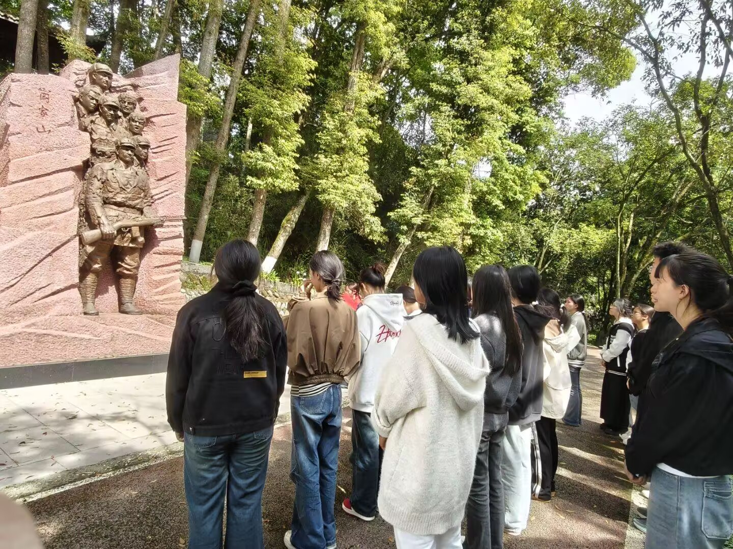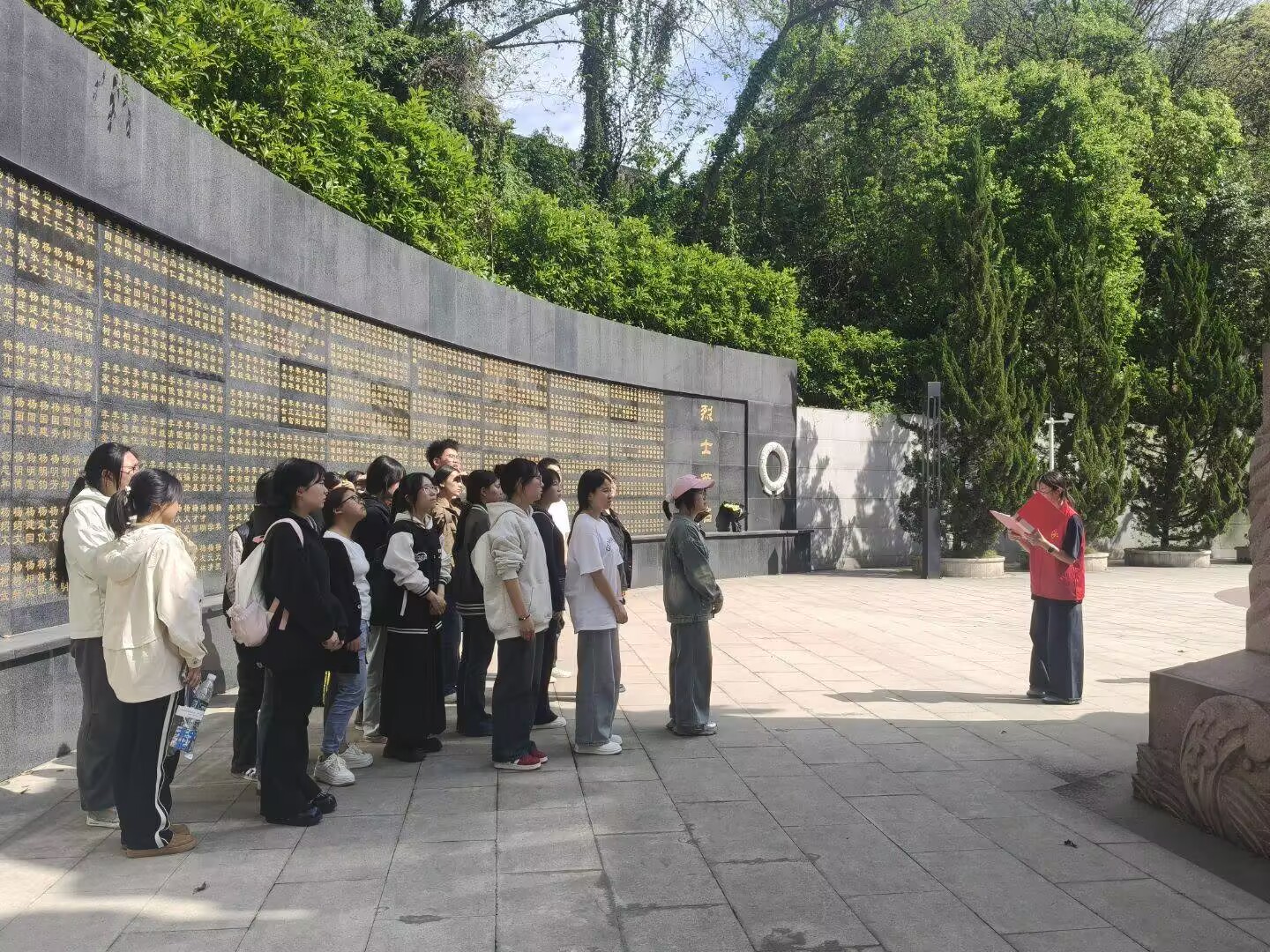 活动当天,全体人员,有序参观烈士事迹陈列馆,认真聆听“挺进西康、解放西康”的革命历史讲解,深入了解雅安本地英烈的英勇事迹。在镌刻着2078位英雄姓名的烈士英名墙前,全体同学肃立凝视,静默致敬,内心深受震撼。随后,大家步入安葬着347位烈士的墓区,逐一瞻仰,在静默中感悟英烈精神的不朽力量。