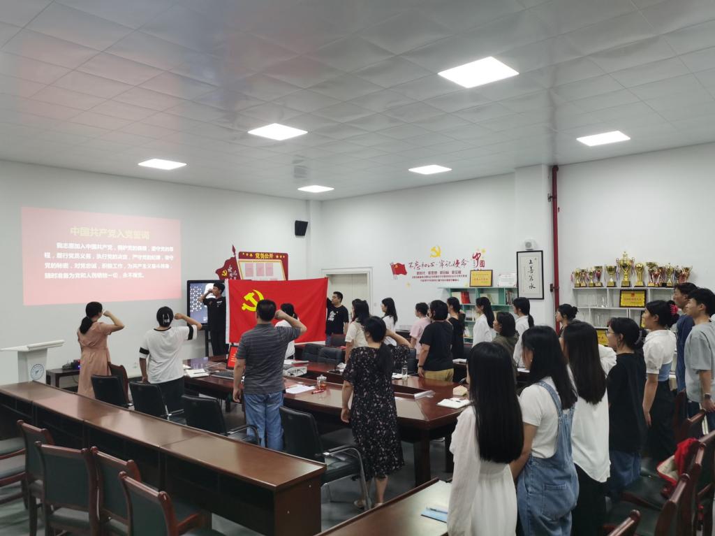 TapTap第三党支部于2023年6月19日在经开区食品药员工产性实训基地205会议室召开讨论接收预备党员支部大会暨新党员入党宣誓老党员重温入党誓词主题党日活动。会议由第三党支部书记芦珂主持。会中根据党总支发展党员工作计划,经上级党委预审同意,支部大会讨论了李思宇等16名员工发展对象的入党问题,经充分讨论和表决,大会一致同意接收16名发展对象为中共预备党员。