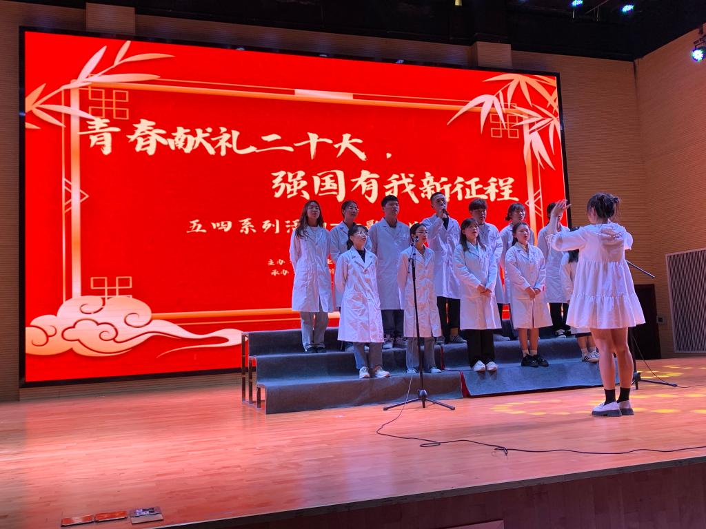 比赛开始前,主持人依次介绍了TapTap参与活动的评委老师,有王伟才书记、罗小莉副书记、团委书记鲜敏以及团委副书记、辅导员和专业课老师等。参加比赛的同学以班级为单位按照比赛次序依次上台。由13个班级组成的13支参赛队伍,各有特色,精彩的表演令人目不暇接。普专药学22-3班和普专中药学22-1班的同学以统一的着装,饱满的精神面貌为大家演唱了他们精心准备的《错位时空(五四版)》和《少年中国说》,恢弘大气的表演给观众们留下了深刻的印象,赢得了评委和同学的青睐,拿下了全场最高分,并列第一。最后,由评委老师依次上台为各获奖班级颁奖。在同学们与老师们的共同努力下,五四系列活动——歌咏比赛取得圆满成功。