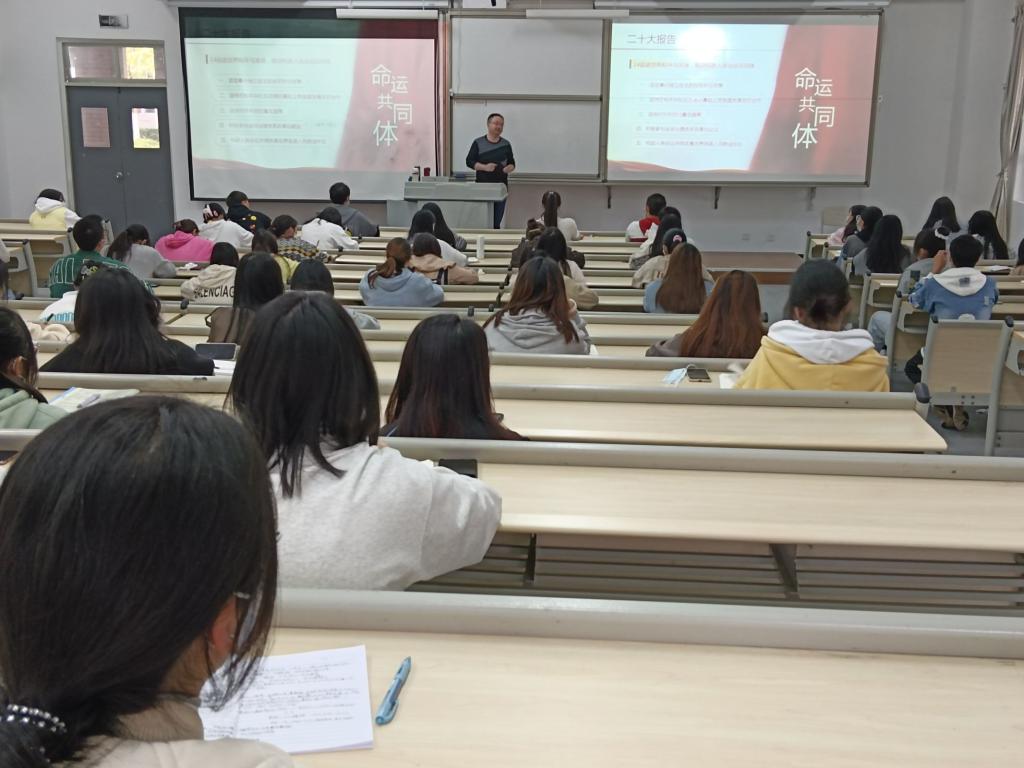 唐慧敏老师带领同学们学习基础团务知识,在铿锵有力的团歌合唱中,融入了同学们对祖国深深的热爱与自豪之情;王伟才书记带领同学们学习党的二十大会议精神,从“党的二十大大会主题”到“三十二字建党精神”,并结合“二十大报告”总结出当代青年应该不忘初心,牢记使命,对党忠诚,不负韶华;芦珂老师带领同学们学习党的十九届六中全会精神,并重点讲解了中国共产党百年奋斗的重要成就和历史经验,阐述了党伟大百年奋斗征程的历史意义;鲜敏老师带领同学们学习习总书记在庆祝中国共产主义青年团成立100周年大会上的讲话精神和习总书记关于青年工作中的重要思想。