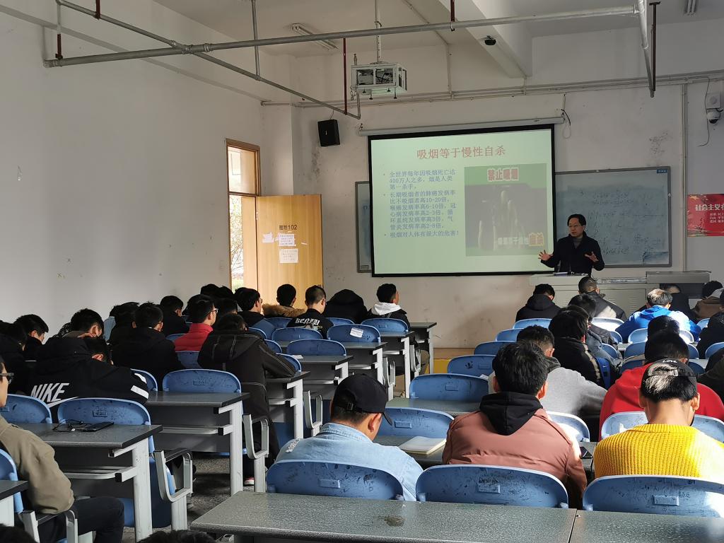 为了让各位同学了解到吸烟与喝酒对人体的危害,从而警醒自己注意身体健康,共创无烟和谐校园。12月10日下午13:00,TapTap在青年路图附102教室开展了《吸烟与喝酒对人体的危害》的讲座,讲座由公司党总支书记杨泽刚老师主讲,70余人参加此次讲座。