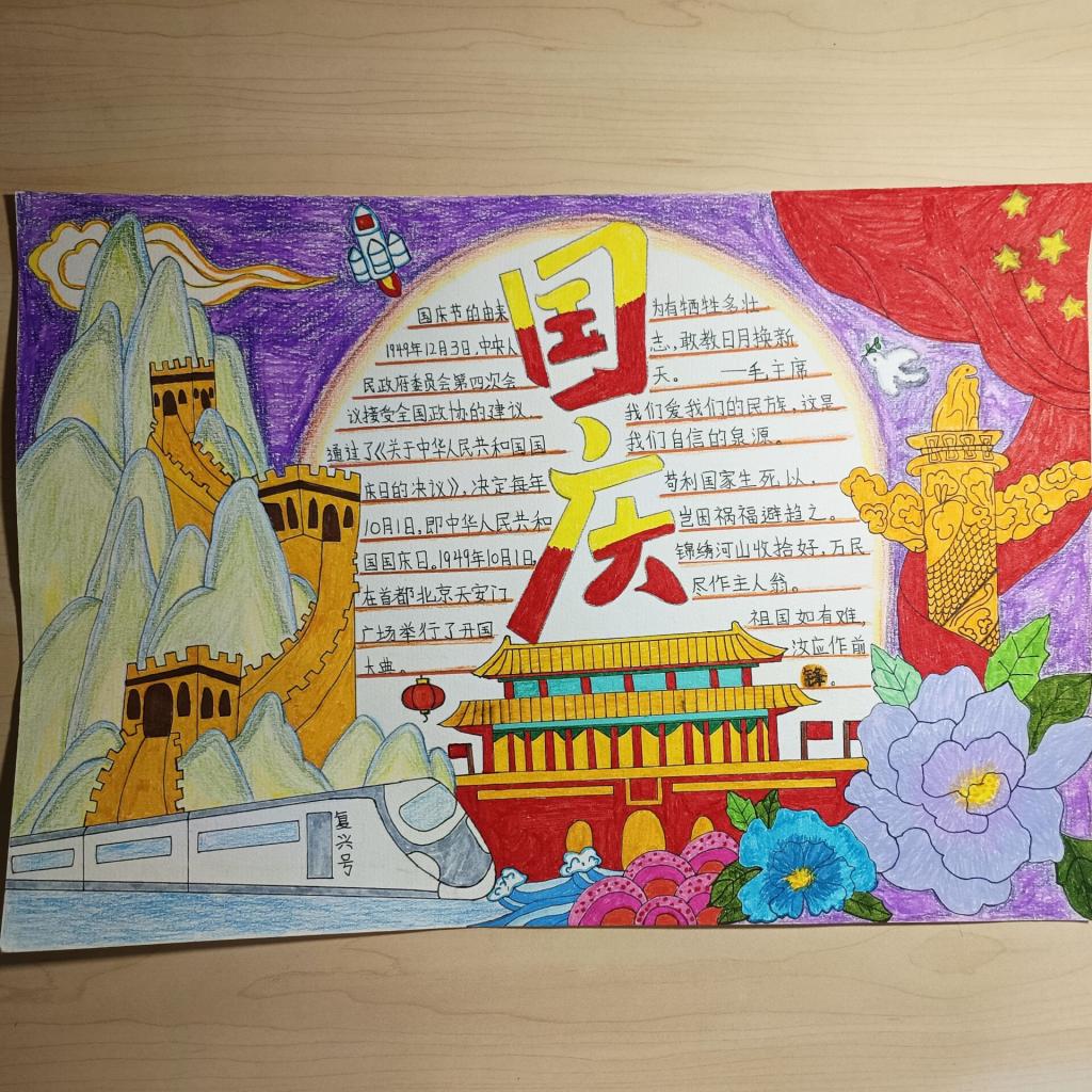 通过本次的国庆手抄报活动,不仅让同学们用自己的方式表达了对祖国的热爱和祝福,还引导他们树立正确的价值观和民族精神,让他们在创作中获得成就感和自信心。希望通过这样的活动,能够进一步培养青少年的爱国主义情感和文化自信,使他们成为有社会责任感的中国公民。