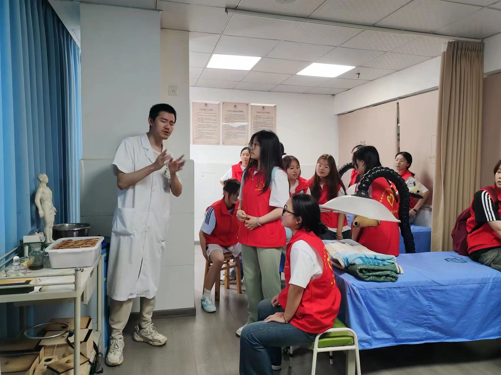 活动开始,医院老师首先为同学们详细讲解了拔火罐、艾灸的种类以及基本原理。通过讲解,同学们了解到拔火罐是一种传统中医外治法,具有通经活络、行气活血、消肿止痛等作用,艾灸有温经散寒、行气通络、升阳举陷等作用。在理论知识的基础上,老师为同学们演示了拔火罐、艾灸的操作流程。从选罐、点火、吸罐到起罐;点艾条、患部位灸,灭艾条等步骤,每一步都讲解得非常详细。同学们聚精会神地观看老师的讲解以及实操演练。演练结束后,老师鼓励同学们自己上手体验,同学们纷纷拿起火罐和艾条互相体验拔火罐和艾灸的感觉。在体验过程中,同学们感受到了拔火罐和艾灸带来的舒适感和放松效果,对中医文化产生了更加浓厚的兴趣。