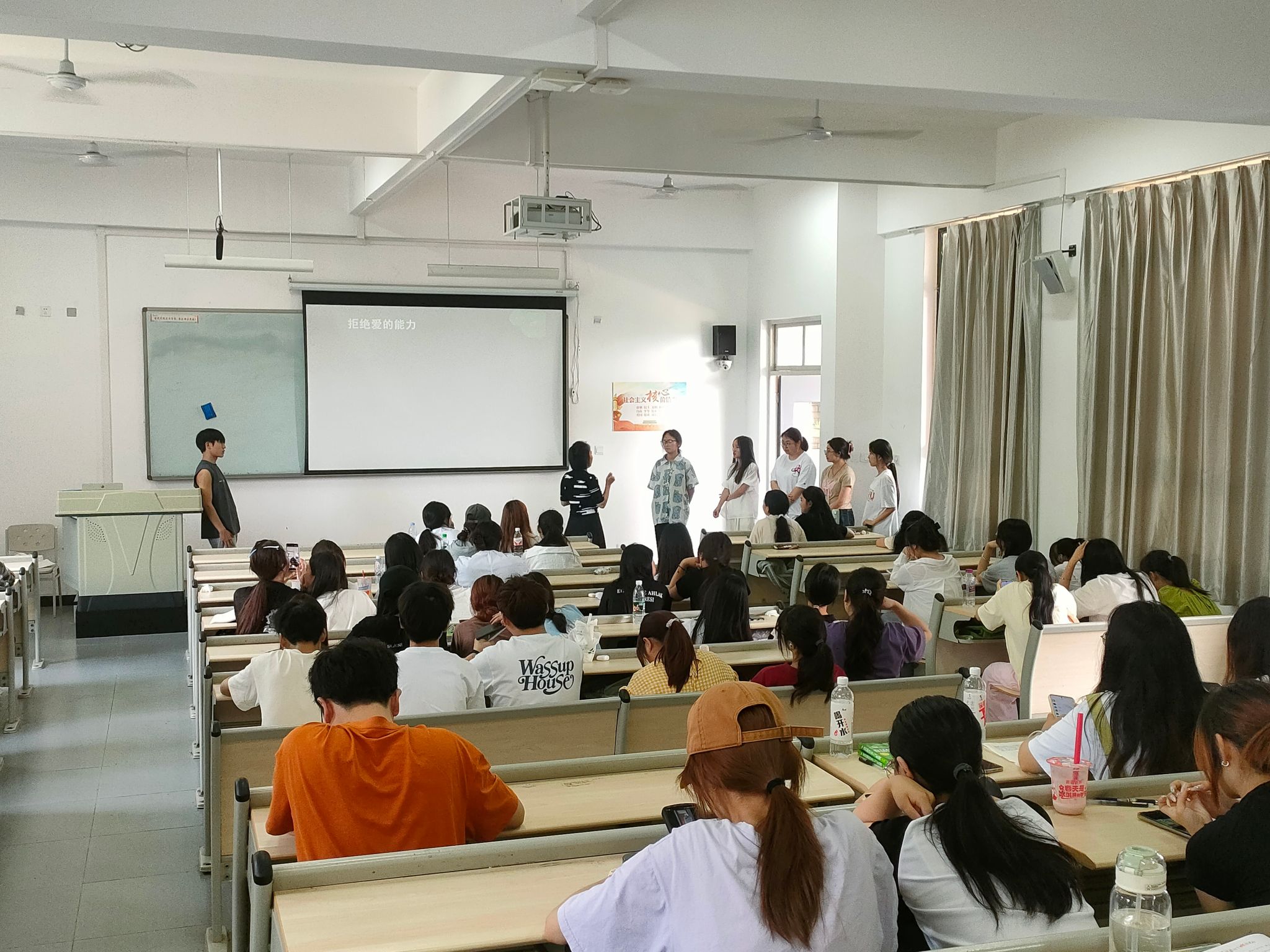 讲座上何老师告诉同学们要理性认识爱情,爱情只是漫漫人生路上的一朵小浪花,并非人生全部;和同学们一起探讨爱的能力提升,一是学会表达爱,要以对方喜欢的方式传递爱意;二是学会鉴别爱,警惕“杀猪盘”、“PUA”(Pick-up Artist)和“CPU”,向同学们普及了情感诈骗、精神打压和情感绑架洗脑,让同学们学会鉴别爱和拒绝爱,同时也要明白爱人首先学会爱自己,只有自己内心爱意充盈,才有能力去爱他人。
